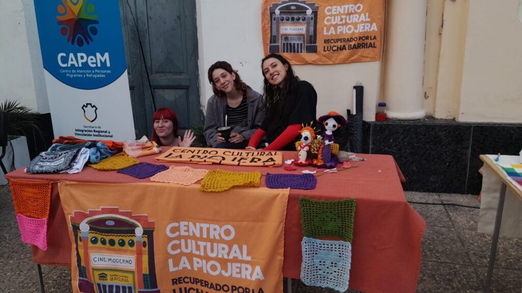 El componente comunitario está fuertemente representado. Miriam, compañera militante de la ordenanza de cultura viva comunitaria, representa a La Piojera, colaborando con la organización de la fiesta. Aunque este año no trajeron programación temática referida al Día de los Muertos, están invitando a sus actividades paralelas, como obras de teatro y shows comunitarios.