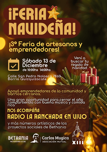 El Centro Social Bethania convoca a la comunidad a su tradicional feria de fin de año el próximo sábado, de 10 a 14 horas, ofreciendo productos de artesanos en el marco de la economía solidaria y destacando la resiliencia comunitaria tras un 2025 muy difícil.