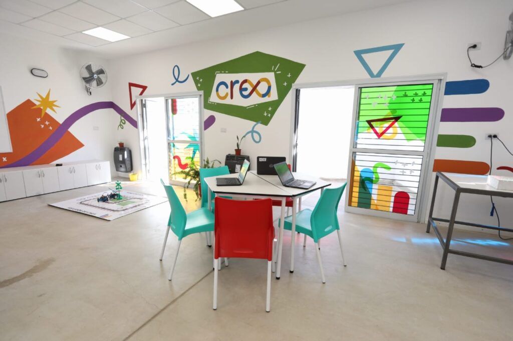 La Tecnoteca CREA está organizada en tres estaciones: la Estación 360°, destinada al aprendizaje colaborativo con dispositivos tecnológicos; la Estación Rec, orientada a la producción audiovisual y sonora; y la Estación Gamer y Microcine, pensada para experiencias inmersivas con videojuegos, realidad aumentada, realidad virtual y proyecciones en alta definición.