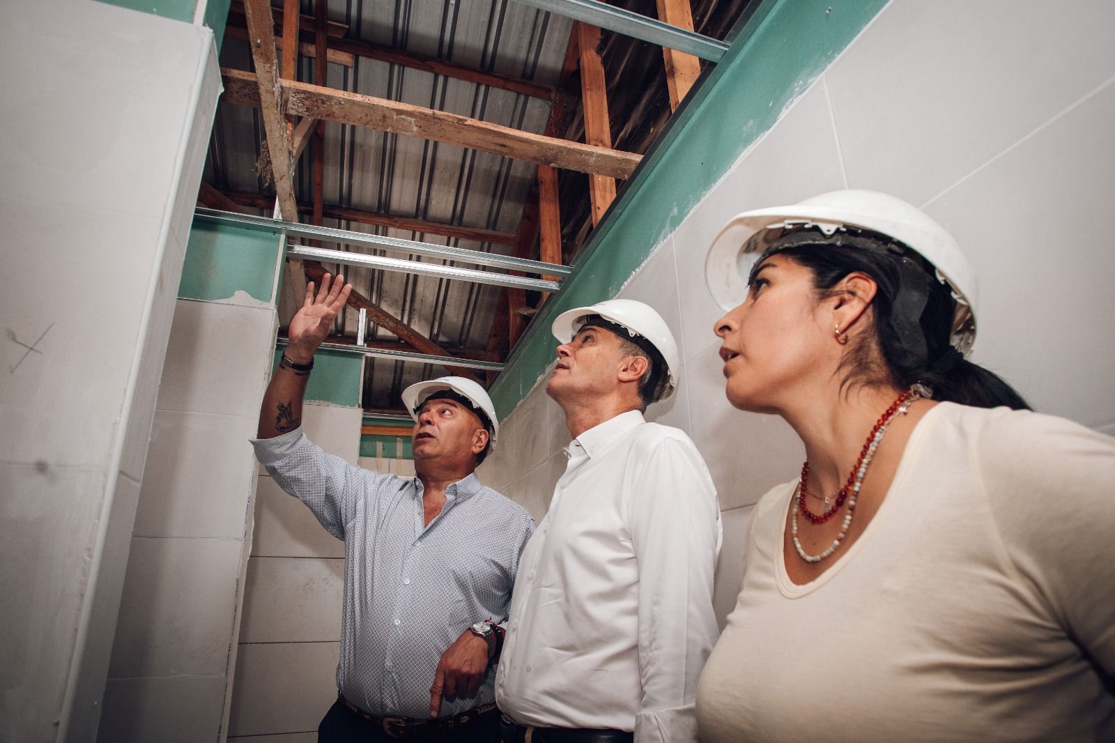 El recorrido incluyó la Escuela Municipal Azor Grimaut, donde avanza la reconstrucción de los baños y la cocina, además de la construcción de un nuevo muro perimetral. Las tareas contemplan la demolición de instalaciones antiguas para la construcción de una nueva batería de sanitarios.