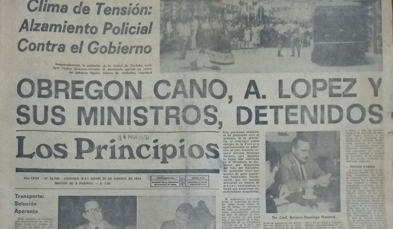 «Era una gobernación muy compleja, porque había que tratar de mantener un lugar de equilibrio entre sectores muy enfrentados dentro del propio peronismo», señaló. El Navarrazo ocurrió en febrero de 1974, cuando el jefe de la Policía de Córdoba, Antonio Navarro, encabezó un levantamiento policial que terminó con la detención del gobernador, del vicegobernador y de decenas de funcionarios. «Navarro alegó que había recibido una denuncia de que la gobernación iba a entregar armas a la población civil. Esa fue la excusa para detener al gobernador, al vicegobernador y a 86 funcionarios más», explicó.
