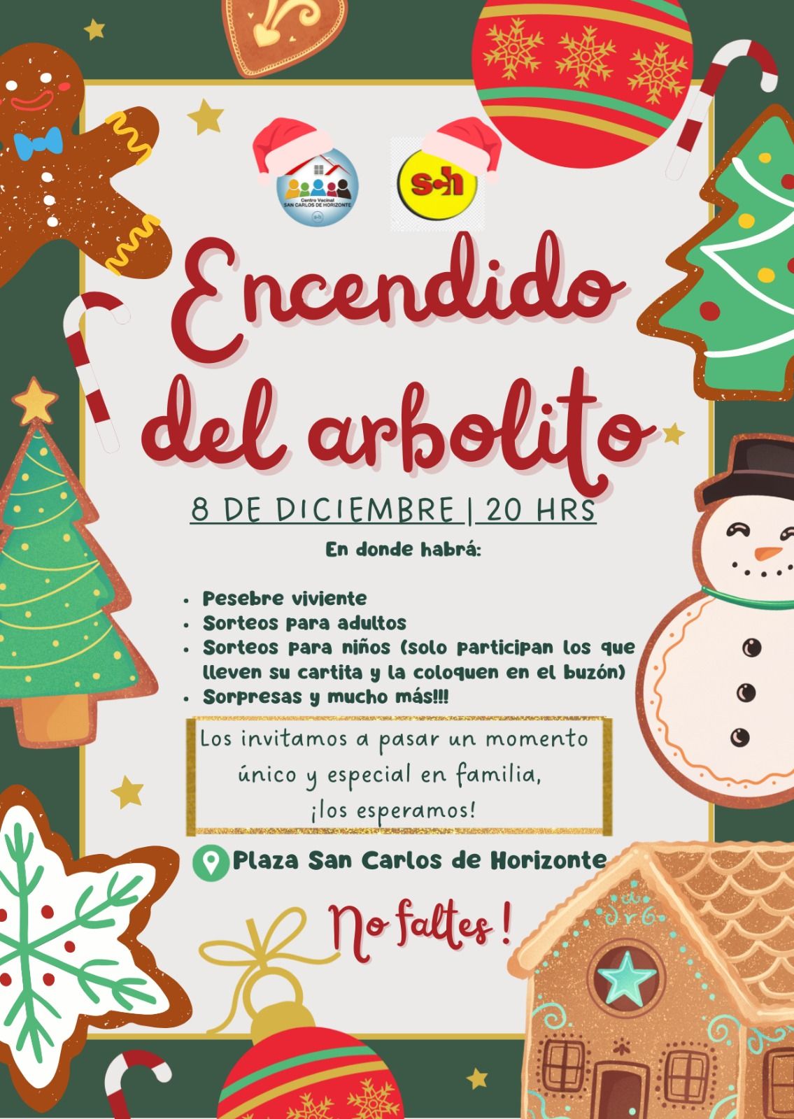 La comisión del centro vecinal y la comisión administradora del barrio San Carlos de Horizonte, que depende de la cooperativa Horizonte, están organizando la décima edición del encendido del arbolito navideño. Sebastián Pereyra, miembro de ambas comisiones, detalló que el evento principal, el conteo para el encendido, está programado para las 20:30 horas.